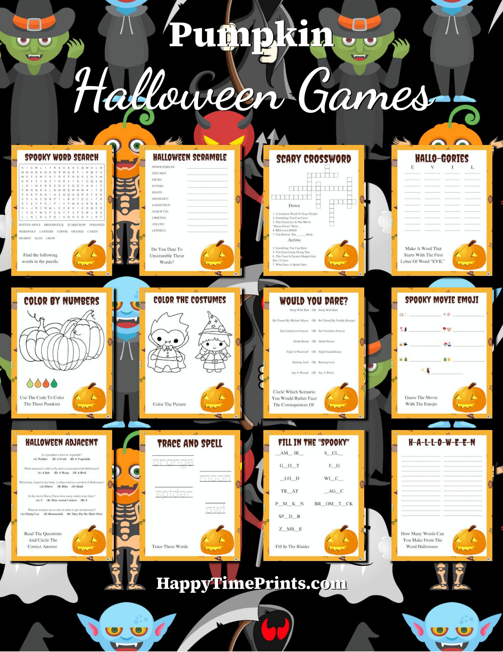 * Pumpkin “Hallo-Gories” Halloween Games (dimension 11×8.5)
